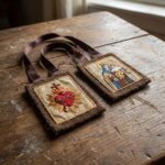 O escapulário verdadeiro dos carmelitas, em lã legítima — não acrílico. A Promessa do Carmo: livramento do purgatório no primeiro sábado após a morte.